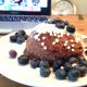 Boekweitpannenkoek op basis van geitenmelk met appel, stukjes banaan, goyibessen, kaneel en geraspte kokos.